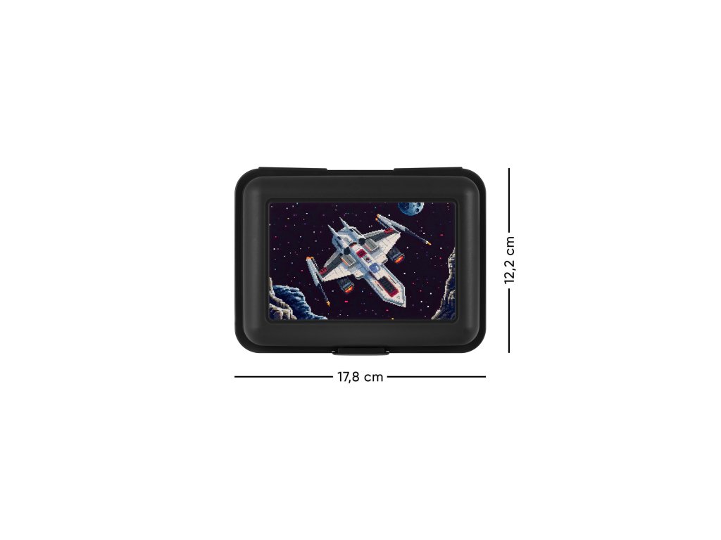 Praktický svačinový box s vesmírným motivem a polohovatelnou dělicí přepážkou pro snadnou přípravu pestré a vyvážené stravy.