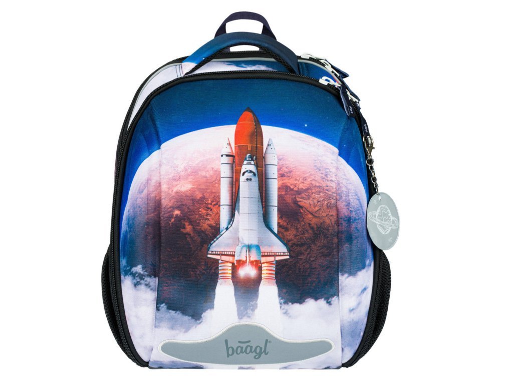 Školní aktovka Baagl SHELLY SPACE SHUTTLE s vyztuženým tělem je vhodná od 1.třídy. Má dvoukomorový systém pro optimální rozdělení zátěže, přední komora obsahuje praktický organizér s kapsičkou na drobnosti či telefon a karabinu na klíče. Boční kapsy z pevné síťoviny, ergonomicky tvarovaná záda.