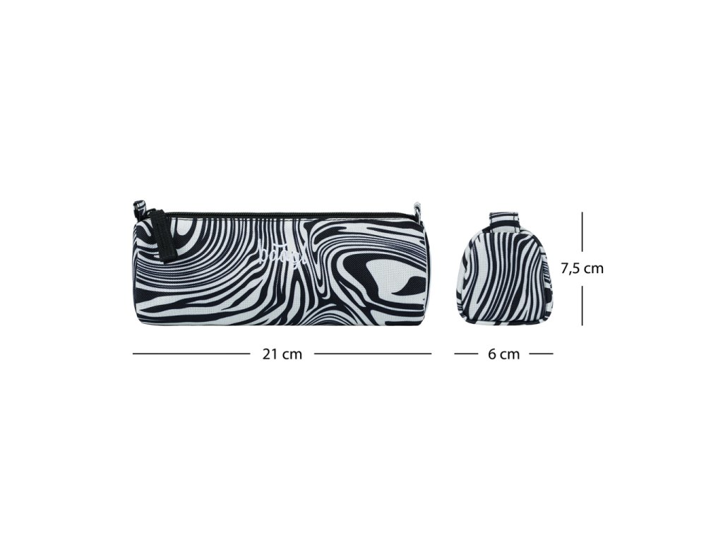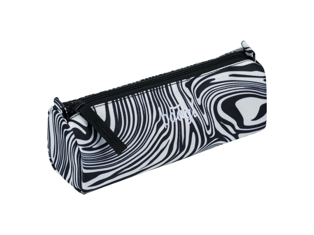 Pouzdro do školy, bílá barva, téma geometrické tvary, s poutkem a s vyztuženými stěnami Pouzdro do školy Baagl patří k základní výbavě každého školáka i studenta, jelikož pojme všechny psací potřeby i další drobnosti.