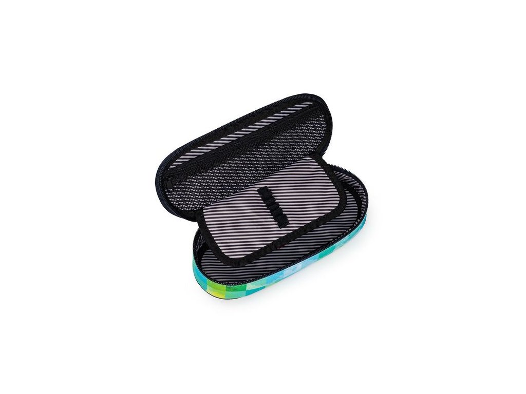 Oválné pouzdro pro všechny starší školáky a studenty. Uvnitř pouzdra je síťová kapsička na zip a klopa s devíti gumičkami na propisky. Volný prostor pod klopou slouží pro další psací potřeby – pastelky, fixy, ale i pravítko nebo kružítko.