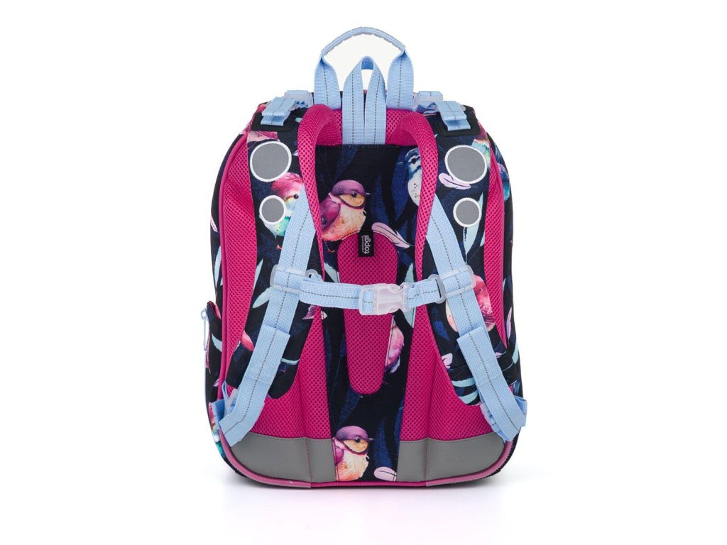 Model BEBE je kompromis mezi aktovkou a školním batohem, který je vhodný pro malé slečny s výškou 110 cm. Roztomilé malé vrabčáky doplní plyšový přívěsek ve tvaru srdce.