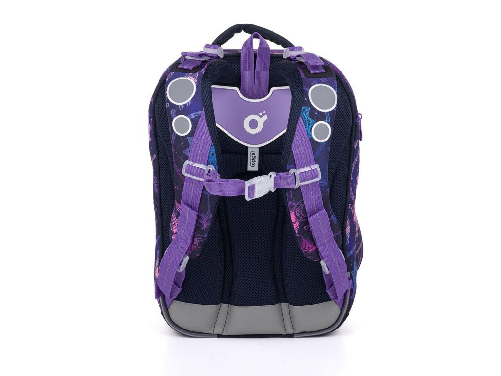 Zadní komora je nejširší, do té doporučujeme dát nejtěžší učebnice nebo desky na sešity. Přední (třetí) komora je ideální pro penál PENN 25006 ve stejném designu nebo krabičku na svačinku. Kromě toho obsahuje síťovou kapsu na drobnosti a karabinu na klíče.