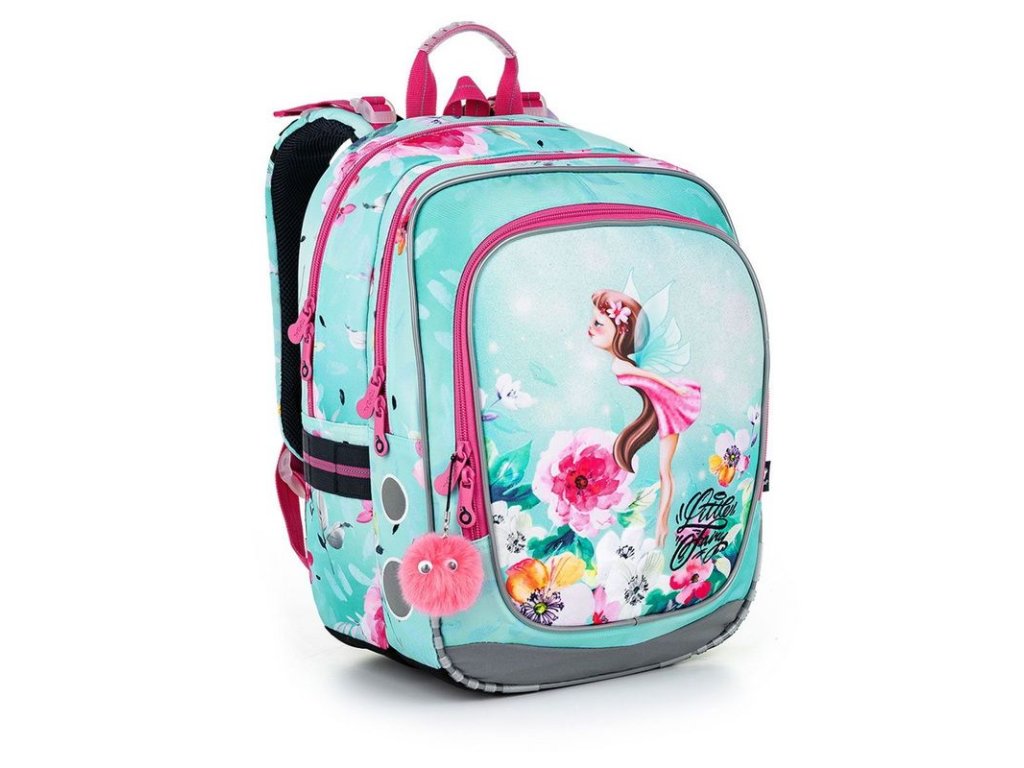 Třpytivý lehký batoh s vílou a chlupatým přívěskem je ideální do prvních školních let. Konstrukce batohu je díky pevným lisovaným zádům velmi lehká, proto jej můžeme doporučit i pro drobné slečny pod 120 cm. Objemem ale určitě vydrží nejméně od první do třetí třídy ZŠ.