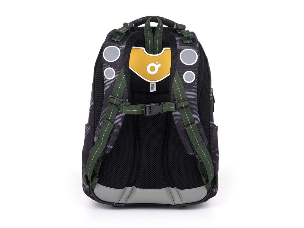 Dvoukomorový model LORI je novinkou sezony 2025 a se svým 27 litrovým objemem poslouží minimálně do páté třídy. Proto jsme zvolili tmavé tóny, oživené khaki zipem a šedými prvky.